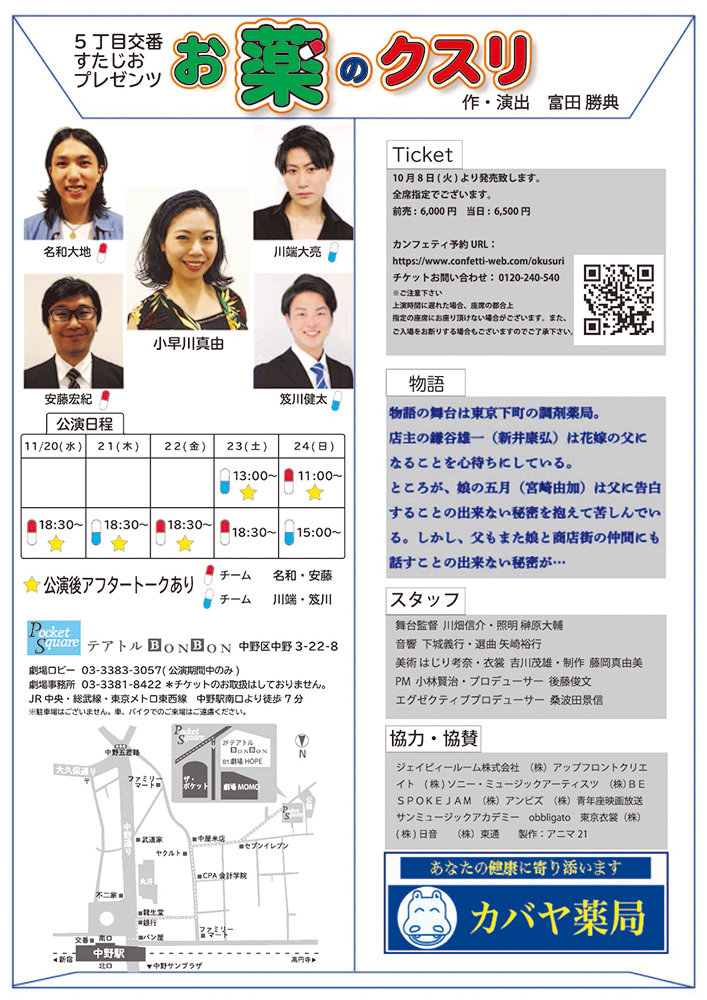※上演時間に遅れた場合、座席の都合上指定の座席にお座りいただけない場合がございます。また、ご入場をお断りする場合もございますのでご了承下さい。