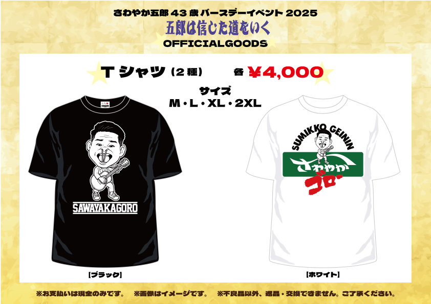 「さわやか五郎43歳バースデーイベント2025~五郎は信じた道をいく~」販売グッズ・販売時間のお知らせ