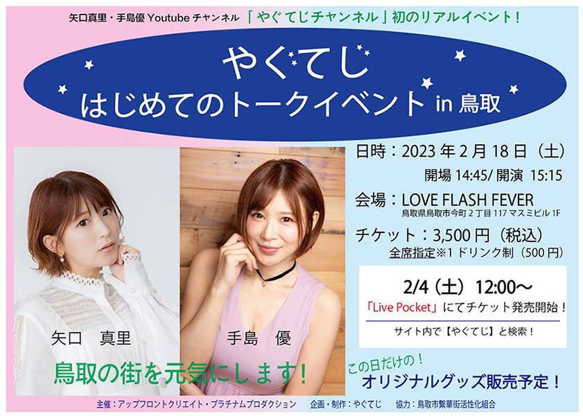 矢口真里・手島優トークイベントin鳥取開催のお知らせ