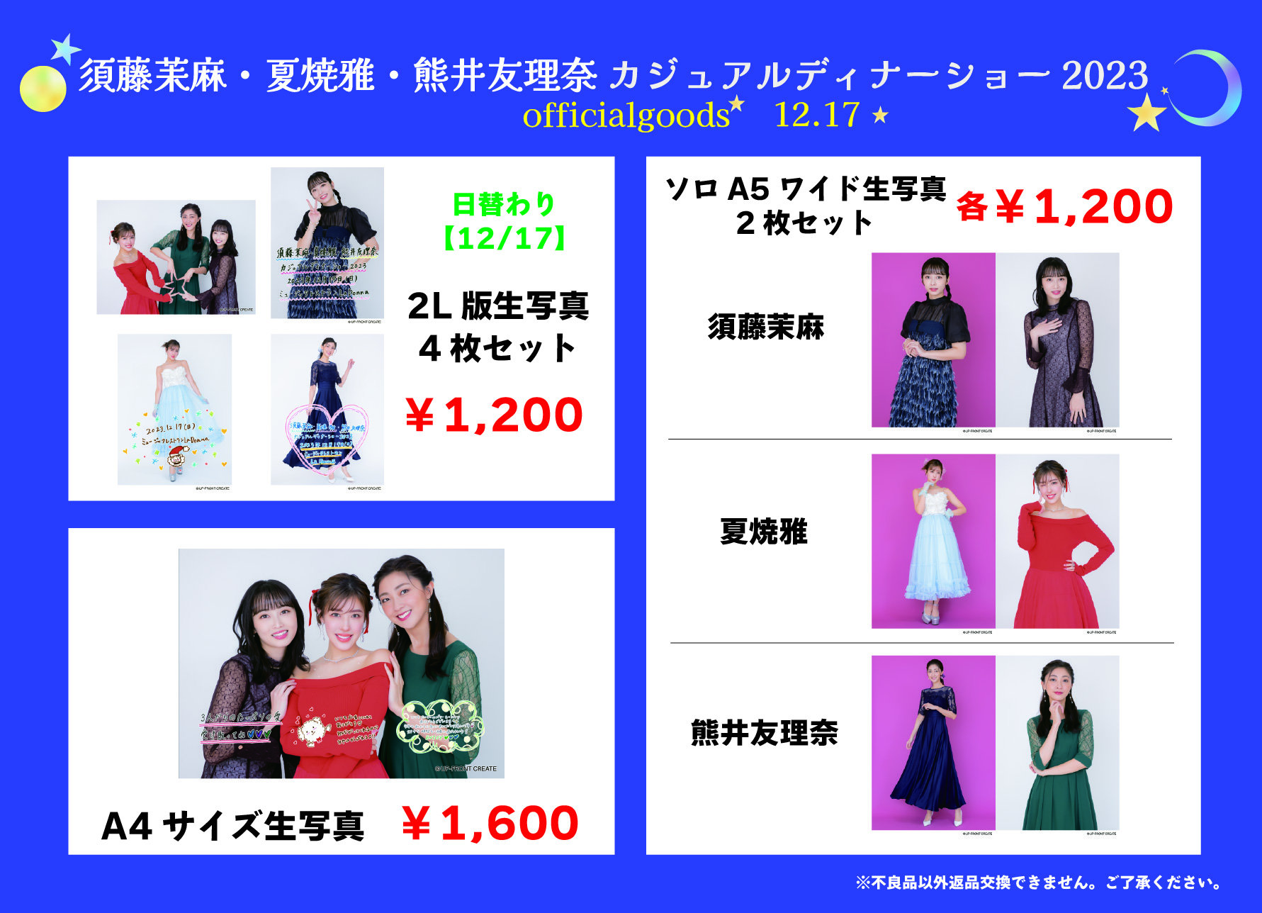 『須藤茉麻・夏焼雅・熊井友理奈カジュアルディナーショー2023』販売グッズ・販売時間のお知らせ