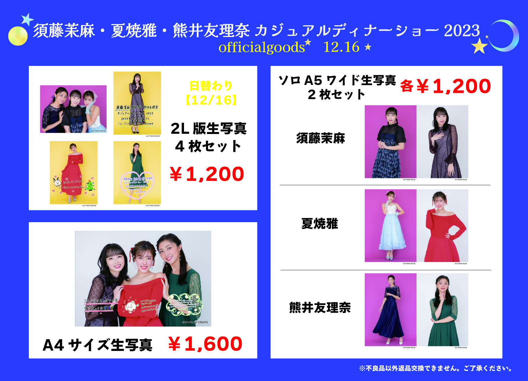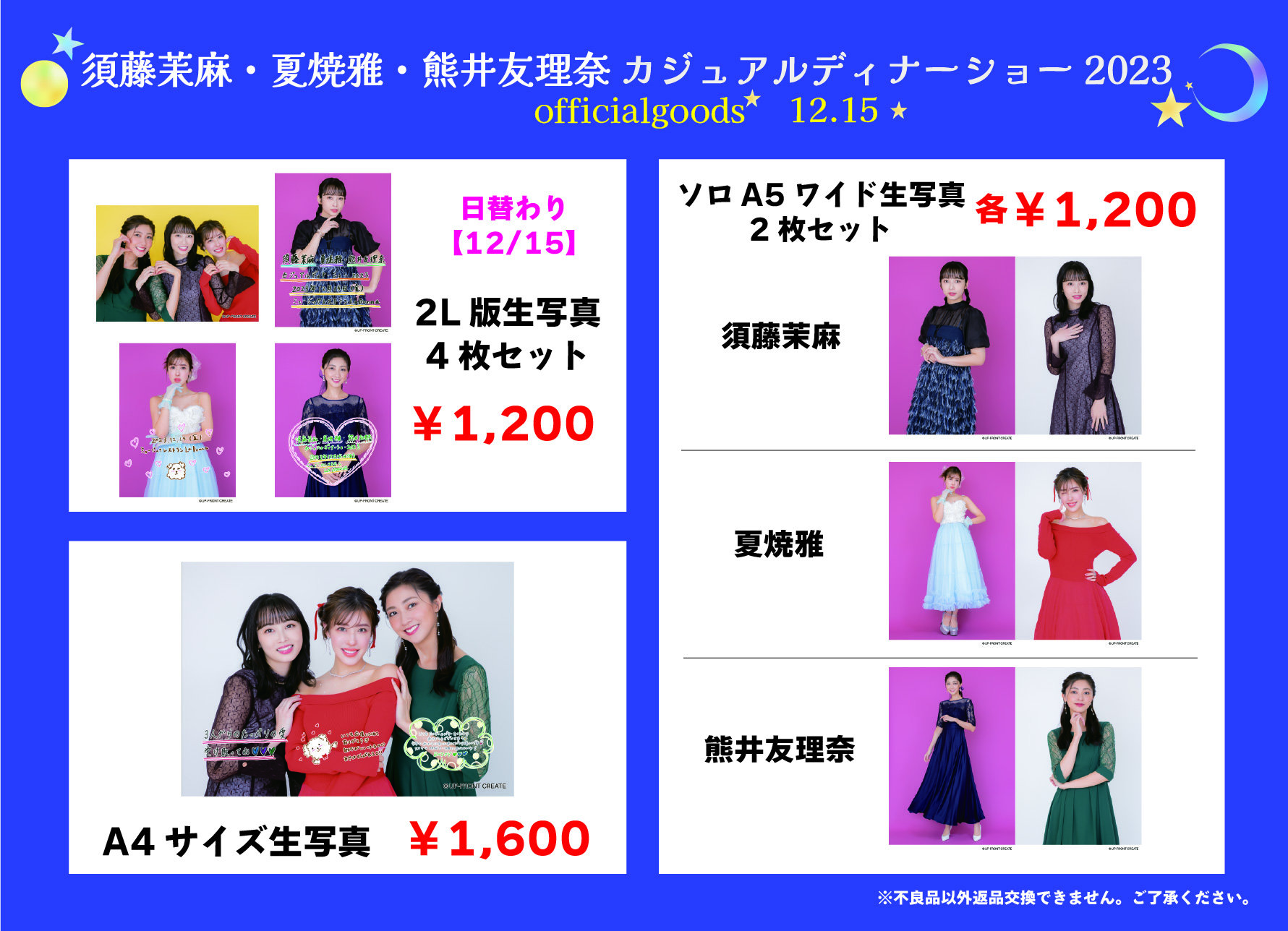 12月15日(金)・16日(土)・17日(日)ラドンナ原宿にて開催される、『須藤茉麻・夏焼雅・熊井友理奈カジュアルディナーショー2023』の販売グッズ・販売時間に関してお知らせします。