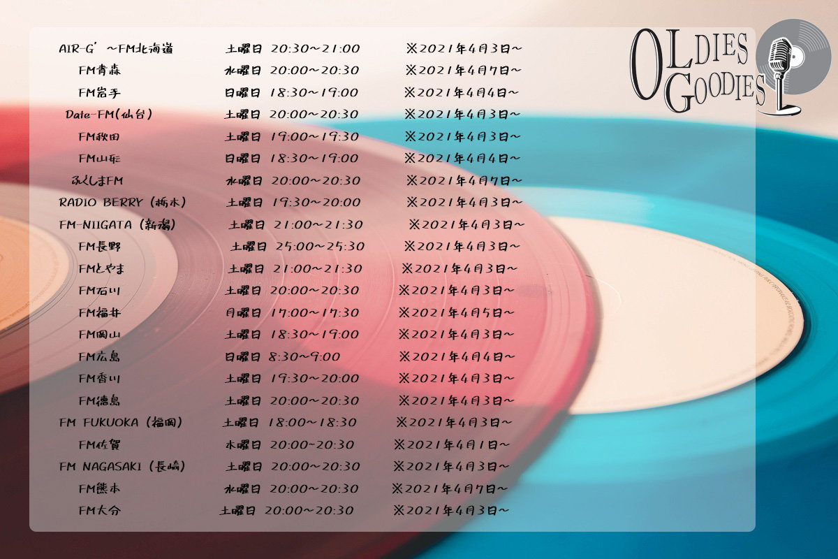 ラジオ番組『OLDIES GOODIES』4月より、JFN系列22局にて放送決定!