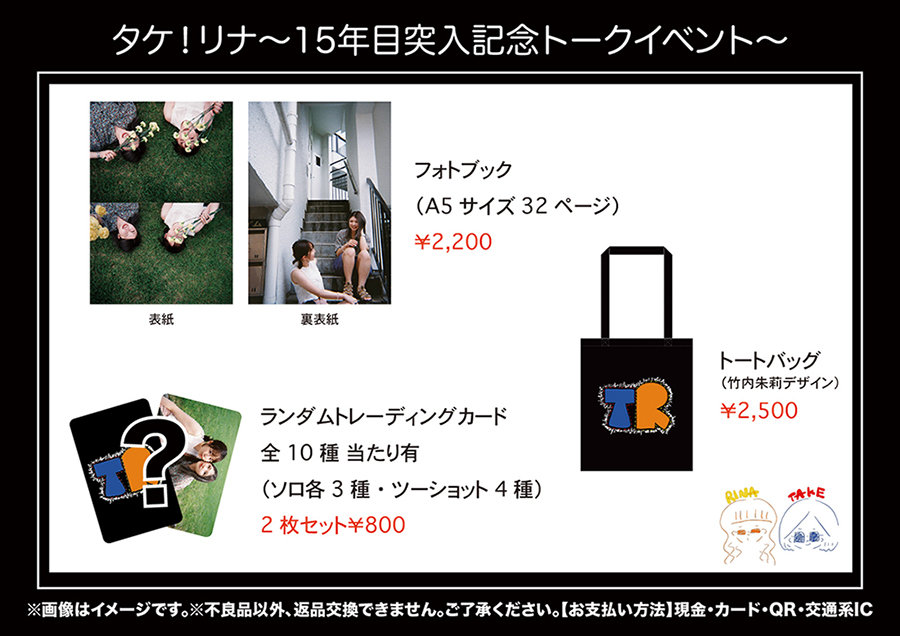 8/31「タケ!リナ~15年目突入記念トークイベント~」販売グッズと販売時間のお知らせ