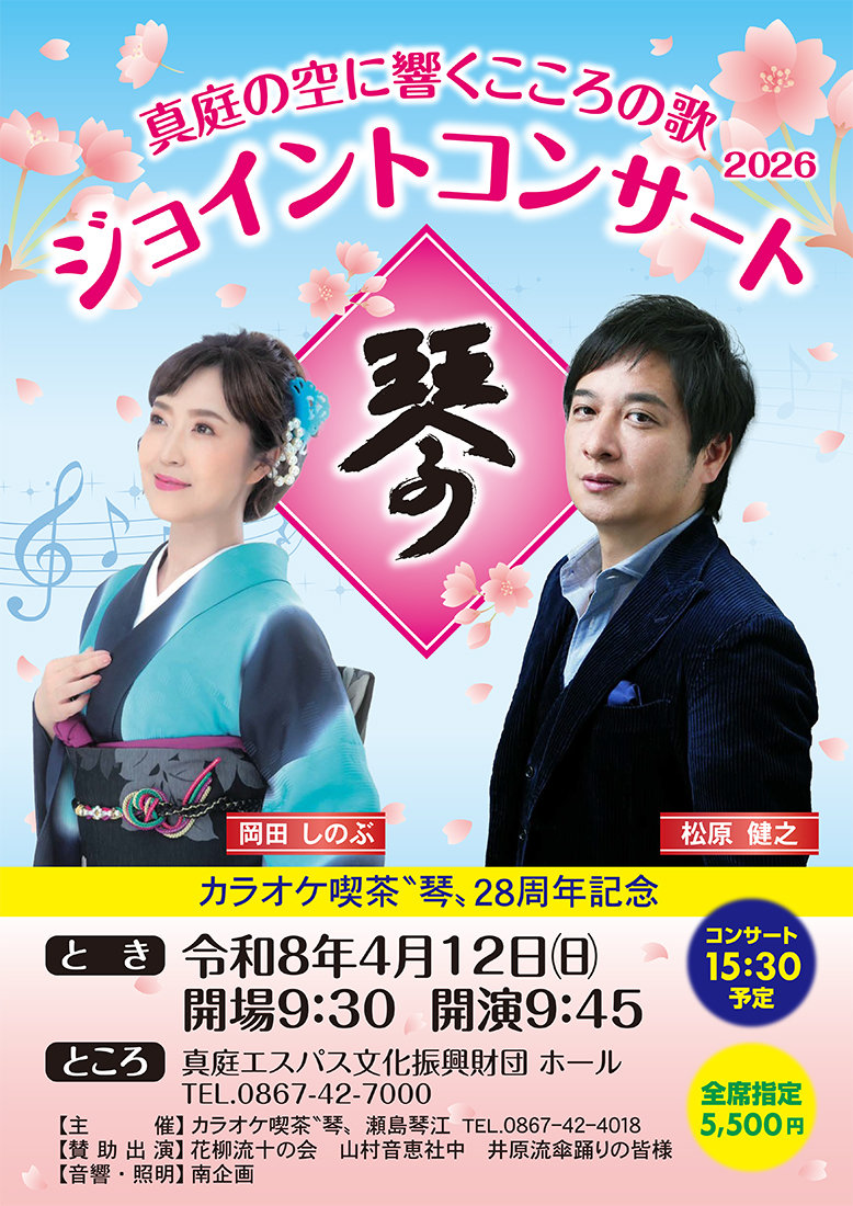 「カラオケ喫茶 “琴” 28周年記念 真庭の空に響くこころの歌 2026 ジョイントコンサート」開催!