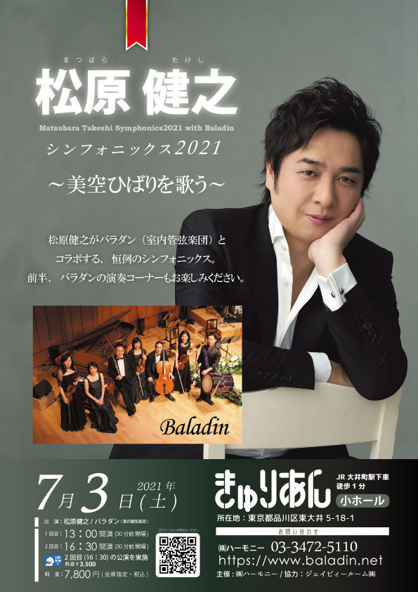 7/3(土)松原健之が“クラシック・スタイルの小さなオーケストラ”バラダンとコラボする恒例のシンフォニックスを開催します!!