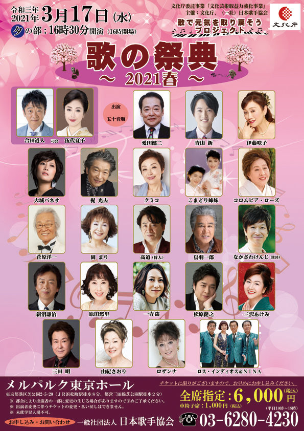 【お問い合わせ】日本歌手協会事務局:03-6280-4230(平日10時~18時)