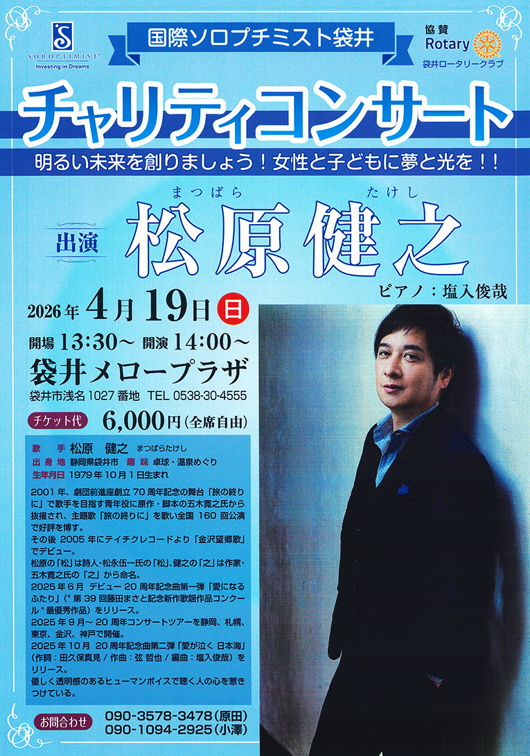 「国際ソロプチミスト袋井チャリティコンサート」開催!