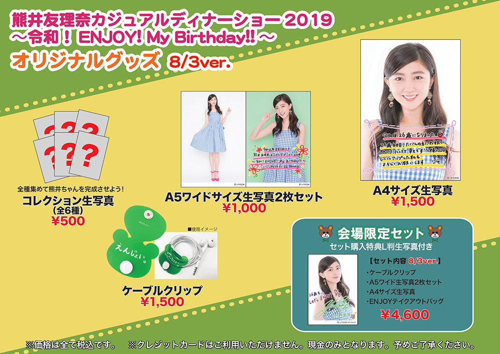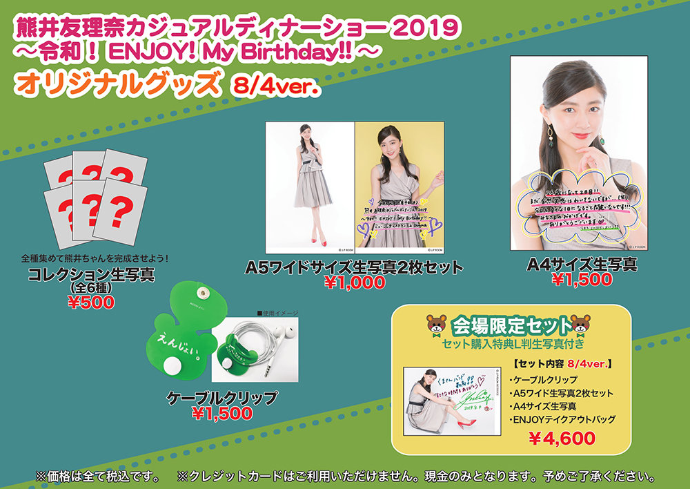 『熊井友理奈カジュアルディナーショー2019~令和!ENJOY! My Birthday!!~』グッズ情報