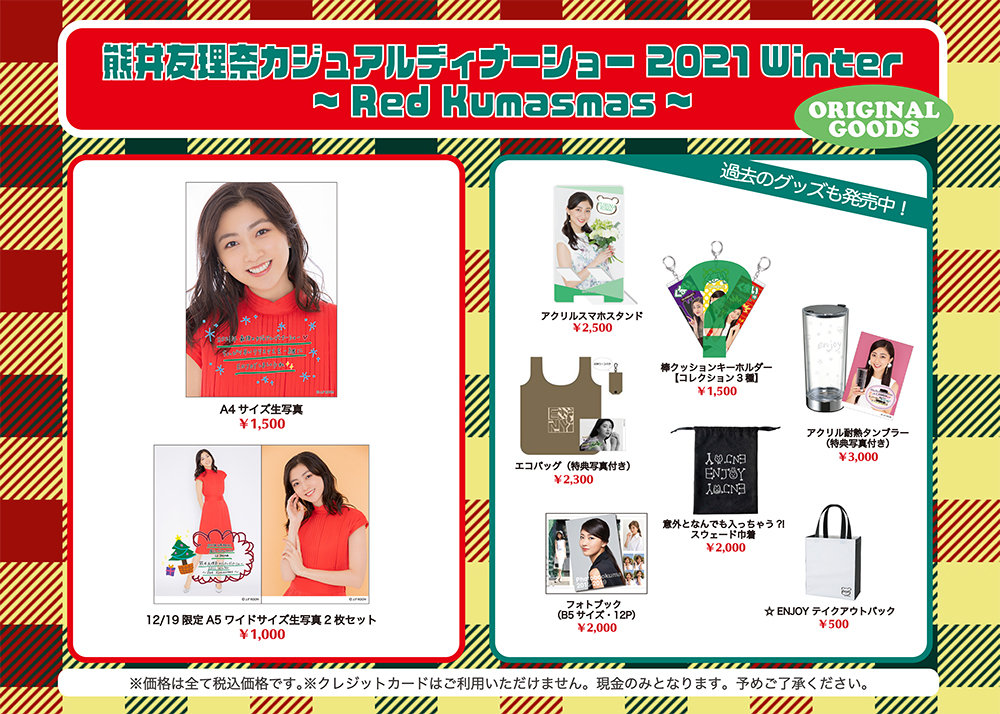 「熊井友理奈カジュアルディナーショー 2021 Winter ~Red Kumasmas~」グッズ情報