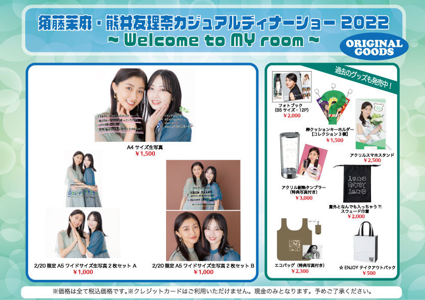 『須藤茉麻・熊井友理奈カジュアルディナーショー 2022 ~Welcome to MY room~』グッズ情報