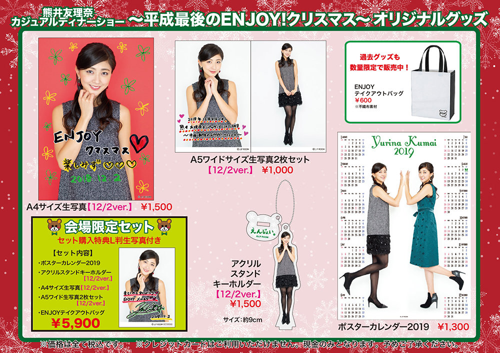 「熊井友理奈カジュアルディナーショー~平成最後のENJOY!クリスマス~」グッズ情報